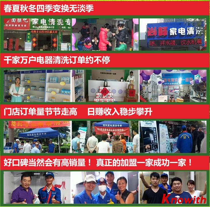 万元无忧创业套餐,全套家电清洗产品配备、完整的家电促销方案、专业营运指导、区域授权保护,无风险创业。只要你比别人有恒心,财富永远是属于有准备的人。